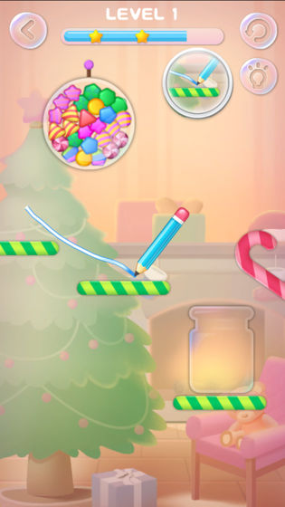 2、简单的游戏规则和,画线使游戏中的小糖果到达指定位置;