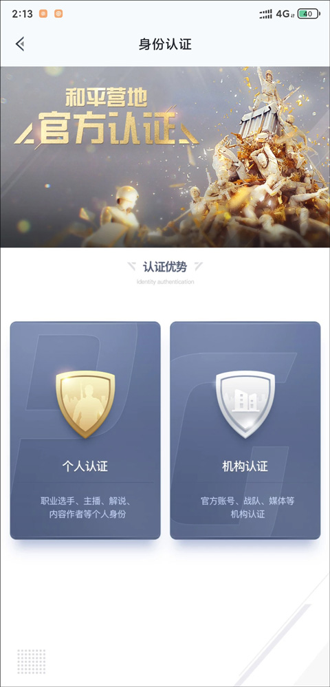 4、点击个人认证,拥有职业选手、主播、解说、内容作者、互动剧情作者等申请类型可以选择