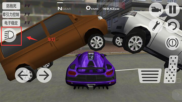 操作方式也可以自由选择,有点击式,轮盘式和手机摇动。让我意想不到的是游戏还可以昼夜切换,车灯方面做的很好。漂移的话有一个专门的漂移键。视角也可以在常见的三个视角之间来回切换。音效和音乐方面应该算是弱项,没有让人振奋的引擎发动,漂移也只有单调的摩擦声,这点你司还要加强。