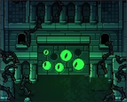 击杀史莱姆后拿深绿武器基本上都能清完洞穴图,有一个有绿色眼睛的房间是召唤国王用的,暂时进不去,第二个镇子连接着地洞,这个地洞难度最低,顺手清了,商店和徽章买一买,把之前跳过的地洞都清一下,然后出发去火山。