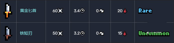 其中白色到蓝色这个品级阶段,属于游戏内最低的装备档位,白色对应着常见,浅绿则是稀有的,蓝色叫罕见的。虽然罕见和稀有听起来很厉害,实际在游戏里也就是铁短剑,黄金剑这样的基础款,一般都可以在商店或者打造中获得。