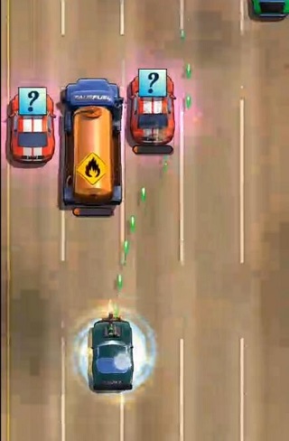 值得注意的是,目标里面,里面会有一种特殊的油罐车,将它打爆,之后会引发连锁爆炸现象,为你清空前方的道路,当然更值得注意的是,打爆他的时候请不要靠得太近,不然会连你一起上天。在这里面,车辆有着属于自己的分类,普通的车打爆之后只增加金钱,如果车头上还顶着一个问号,那么说明打爆了之后有可能会掉落道具,如果车头上贴着一个燃烧的标志,那就是易燃易爆的,那是油罐车。