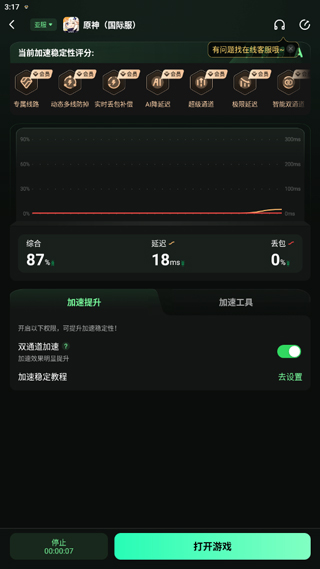 1、在本站下载原神日服手游,游戏需加速器启动,打开奇游手游加速器,找到该游戏,然后点击右侧加速;