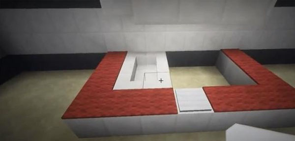 在上面铺上一层红色地毯, 最中间放置一块白色的测重压力板。