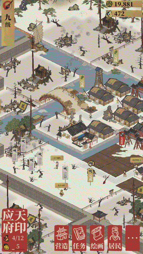 没错,民宅的好处在于,其他水井、画院都是每次要点生产才能出铜钱,而民宅只要你设置税课司,它就会一直自动帮你收铜钱。所以尽可能都升满级