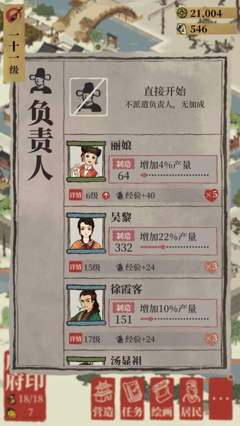 三、是注意人物特殊能力,比如汤显祖在负责理财工作时本金可以减少30%(升级后)、沈万千在探索新区域时花费可以减少4%。而且这项能力能随着人物升级不断提升。