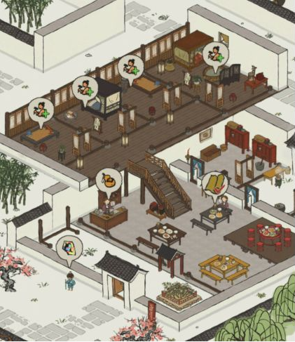住在民居里的每个小人,也都有自己的故事,还会跟同院的邻居发生各种各样的交集,有的和睦相处,有的争吵不休,留下一个个耐人寻味的小故事。游戏中各处忙碌的小人,不断地创造出生活的气息,让人觉得,这就是心中理想的江南!
