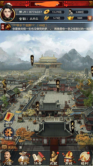 极品芝麻官是一款以古代官场为题材的策略经营养成手游,游戏中玩家将扮演一位极品官员,从九品芝麻官一步一步成为当朝一品大员,你将体验到娶妻纳妾、生孩养娃、家族结盟、联盟争霸等游戏内容。与其他游戏不用的是,该游戏告别枯燥乏味的刷怪升级,抛弃模式单一的经营玩法,而是来一场尔真正的虞我诈的官场争斗。而且,游戏的画质唯美精致,故事剧情也是丰富多彩,真实的模拟官场玩法,玩家需要一步步向最高权力进步,还有丰富的妻妾系统,可玩性极高,有兴趣的可以免费下载体验。