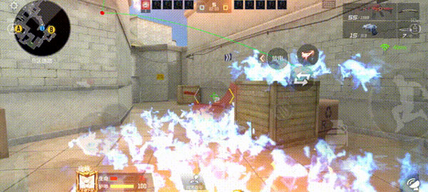 该投掷点位可以有效阻拦从中桥回防A包点或者在此处蹲守的敌人,为A大方向的队友提供侧身掩护,当然如果想封掉中桥B方向的狙击手,投掷烟雾弹也会有很不错的效果,以下为保卫者视角展示: