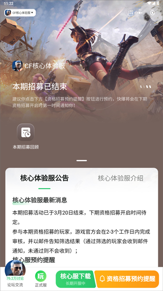 核心体验服为长期测试服务器,每日需完成官方发布的任务,否则会清除资格。