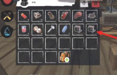 4、我们制造完了这个茅草基座,在背包里把茅草基座拖入快捷栏,然后回到主界面点击快捷栏里的茅草基座。人物会举个锤子出来,我们把准心对着原来小船边缘的海面,会出现茅草基座的影子,当基座变成绿色点击右下角的建造图标,就能把基座组装到船上了。其他物品的组装方法也一样,是不是很简单的呢?(物品拖入快捷栏使用)