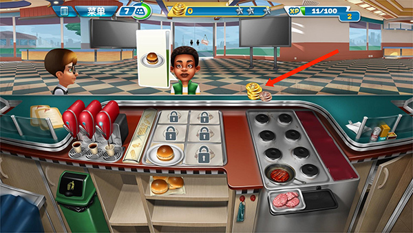每个顾客上来之后都会有一个血条记录时间,走的时候血条剩多少小费就能拿多少。如果一个顾客要两样或者三样东西,给了第一样之后血条是会往上加一些的,而且这个幅度相当可观。因此,做好一样上一样,不如都做好了一起给,这样可以让这个顾客血条是满的离开,也就能拿到最高额的小费。