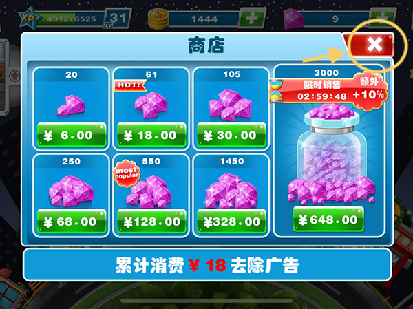 3、在商城界面,进行一次应用内购,广告就会移除,以上就是怎么出去广告的方法了。