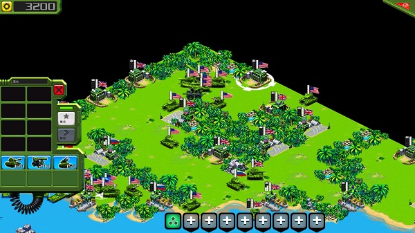 游戏一开始就会提醒要做的是防御或是占领,玩家接着去做就行了,工欲善其事必先利其器,嗯!我们的战争也是先从武器开始,游戏所有的坦克船只飞机都必须对应到工厂船坞飞机场来制造。看到一些得天独厚的地形阵地,是否已经想好自己的发展大计?但一切都是不现实,所有的的建筑都是固定在某个位置,玩家必须占领后再派自己的单位进去才能挂起自己的国旗和生产自己的武器,占领的建筑越多,金钱就会来得越快,制作武器的预算也会越充足。金钱充足了,也布置已经完成,等待开战的这段时间,想搞一下科技升级也是人之常情吧。玩家看着敌人摆出的是神马兵种,对应去制作布阵就是了,但千万不要期待能靠兵种科技来个绝地大反击,因为这个游戏就没有兵种和科技升级这一回事啊!军费消减预算批下了吗?预算编制神马的什么时候开始变得这么有效率了!