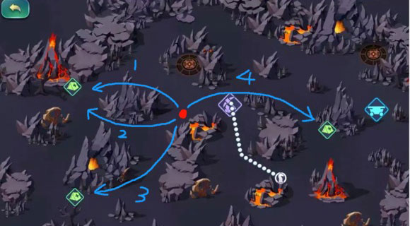 ②但是实际在玩法中,大家都在这样等,手速快的人也不止一个,往往最后是会被胜利者跑掉或者被别人点了。那么这边就涉及到一个博弈。所以想要赢,就要用好细节。先看夺宝奇兵地形图(部分)
