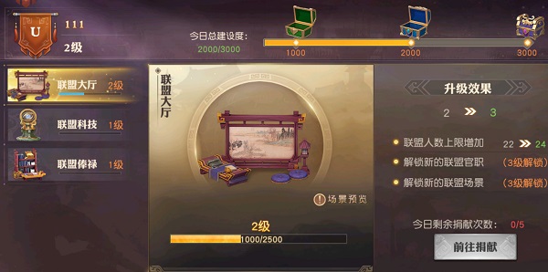 1、每日可以在联盟大厅获取俸禄,根据联盟等级的不同获得的俸禄也会越来越多。