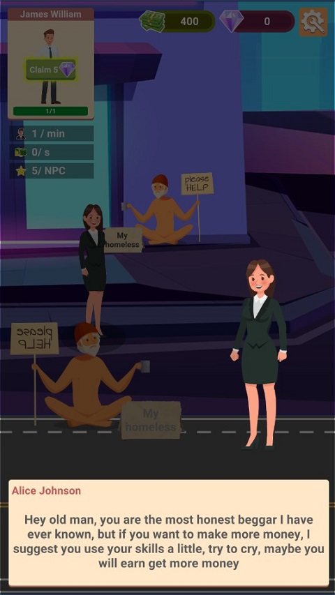 您会选择什么样的谋生手段,是一路乞讨,还是扮演其他角色,如魔术师、街头画家、萨克斯管、宇航员等。亦或者通过游历世界,找到翻身的机遇?开放式的玩法探索,给予了更多可能性,但无一例外的便是开局必须要通过乞讨来赚取一天的开销,期间你也可以通过购买和更换流浪汉风格的衣服来赚取额外收益,流浪汉时尚也是一种赚钱的方式。当然,其他创造财富的机会还有很多,感兴趣的话就赶紧来探索吧!