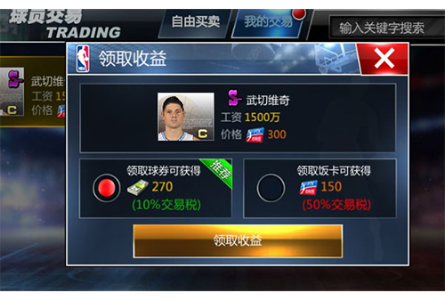成功卖出以后,可以在我的交易中找到已经出售的球员领取收益。直接点击领取收益就可以获得一大笔球劵了,好开心。