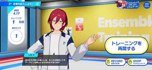偶像梦幻祭Training日服是一款充满活力的偶像运动健身游戏,其画风以运动和健身为主题,色彩搭配阳光明亮。游戏中有50多位性格各异的少年导师供你选择,你可以挑选自己最喜欢的作为专属训练师。游戏内歌曲资源丰富且动感十足,让你在跟上节奏的同时轻松完成健身。此外,还有跑步、深蹲、跳操等多种运动训练项目等你体验。新手玩家也不用担心,偶像梦幻祭游戏提供多种难度和运动量选项,你可以从简单开始,慢慢适应。让我们通过这款游戏消除缺乏运动的状态,收获健康与快乐吧~
