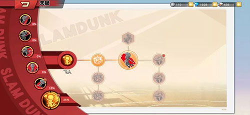 目前,游戏中每个球员都有6个技能,1个大招及5个小技能(仙道的“锋卫摇摆人”除外)。每个技能均有10个左右的专属天赋,需要消耗篮球币、技能训练卡及球员特训卡来解锁。
