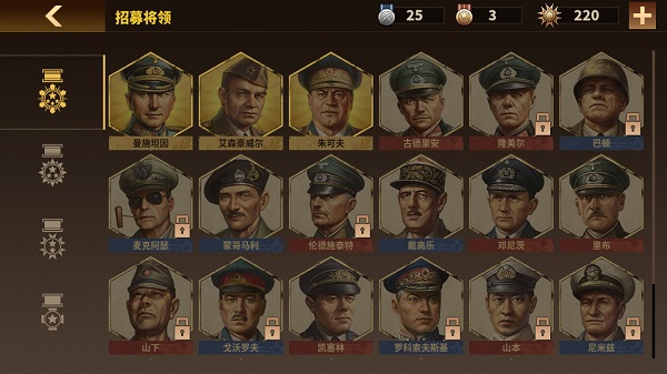 第三种勋章:用于购买将领,或直接兑换金章银章,来源氪金、成就、广告,建议不要乱花