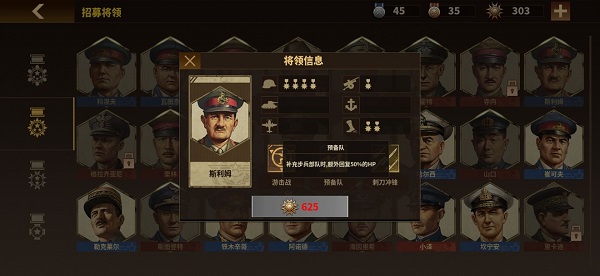 首先说将领。应先明确,本作主力仍为装甲和火炮。理由无需多言,从实战阵型来看,原则上装甲冲前排顶住火力、趁势收割,火炮后排先手输出减轻前排压力,这是典型的配置。