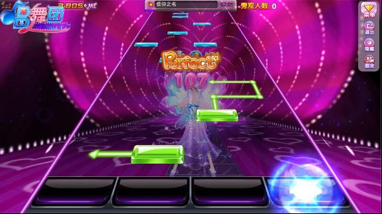 从四个轨道上不停掉落的音符,提供给玩家多轨演奏的乐趣。值得注意的是音符的种类很多,所以一定要注意看屏幕上的提示哦。和其他2个模式一样,大家需要尽可能多地按中每个音符,累计COMBO数(连击),从而获得更高的分数。千万不要miss哦,miss是不会给分的,而且miss后连击又要重新开始计算了。音符的类型:单键音符、单滑键音符、长键音符、长滑键音符