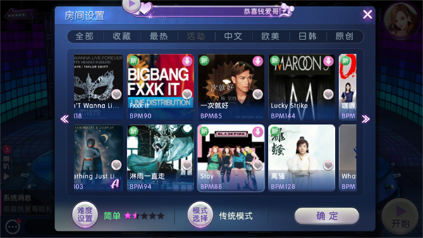 对玩法较为熟悉后,玩家可以设置“困难”难度,考验自己的手速、感受劲舞的忘我境界!快加入劲舞大厅中的传统模式房间,和更多玩家一起体验传统模式的乐趣,感受打出一连串Perfect的快感吧!来体验传统模式玩法,秀出你过人的手速和强大的节奏感吧!