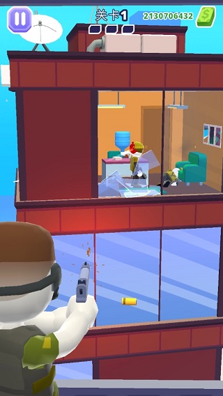 画面场景:游戏画面采用了时下常见的3D火柴人造型,为了呈现出更加逼真的体验,游戏模拟出各种不同类型的场景与特效,从常见的写字楼格子间,到银行商厦、再到各种千奇百怪的环境与场景。各种恐怖分子的穿着也极具特色,场景的还原度也非常逼真从玻璃的破碎、子弹的炸裂、导弹的爆破等各种效果的还原来看,足以展现出研发的实力。