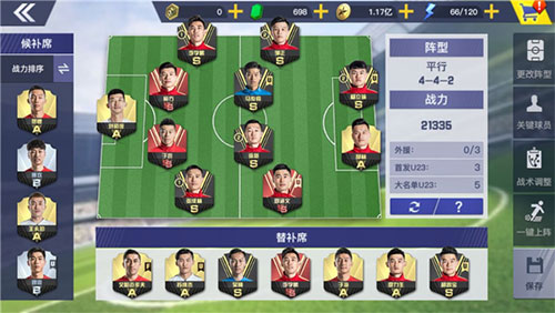 开始时并不是说你想打什么阵型,而是能打什么阵型。由于初期球员不多,第一次的10连抽往往决定了前期的阵容,如果首抽时中场较多,那就换个中场多的阵型,尽量做到高品质的球员都能上场,这样更容易打生涯模式。然后生涯模式里能获得不少的金钱,用这笔钱去转会市场里购入高品质的球员,从而逐渐打造自己的理想阵容。
