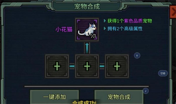 游戏里的宠物不仅能帮你捡垃圾,还可以成为属性的来源。你完全能把宠物看成一种特殊的装备。不同属性和功能的宠物能够帮助你在游戏中起到截然不同的作用。要是能够把这些不同宠物通过合成变成新的宠物不是很好吗?