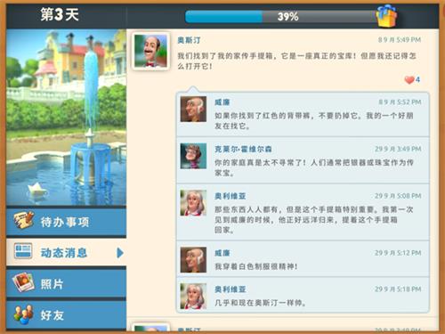 不知道大家注意到了没有,打开任务面板,除了待办事项以外,下面还有动态消息、照片、好友几个功能。千万不要忽视掉哦,点开你就会发现这个游戏的新世界!