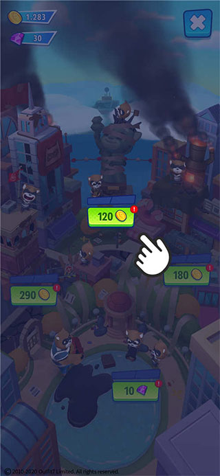 (2)经营养成:使用金币,逐一驱赶被浣熊占据的城市建造,解锁下一章主题。