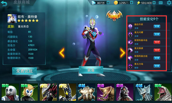 6、所有奥特曼怪兽任你选择,每个英雄更有专属皮肤!快来组建属于你的奥特战队吧!