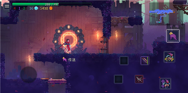 因为死亡细胞作为一款横版动作游戏,是有着两种武器和两种技能的配置的,而且主角能跑能跳能翻滚,关键连杀之后还会触发暴走状态,翻滚和移动都是会得到巨大加速的,这些东西都要塞进相比电脑来说狭小的手机屏幕中,稍有不慎就会让玩家操作十分不方便,但重生细胞中对UI布局的设计十分聪明,两指即可轻松操作。