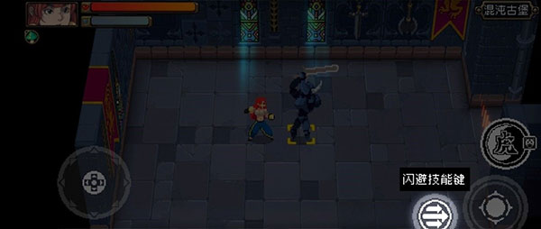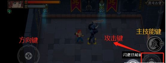 8、战斗场景中会出现文字指引,根据指引点击闪避技能键进行闪避