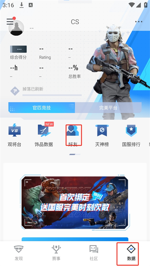 1、进入软件后,我们点击数据,在数据页面选择好友;