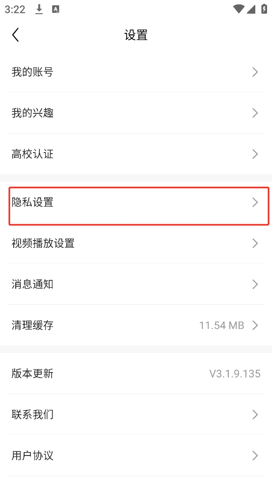3、在设置中我们点击隐私设置;