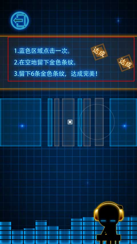 1、打开游戏之后,首先玩耍简单的模式来了解游戏玩法。这个模式的玩法就是:1.蓝色区域点击一次,2.在空地留下金色条纹。3.留下6条金色条纹,达成完美!