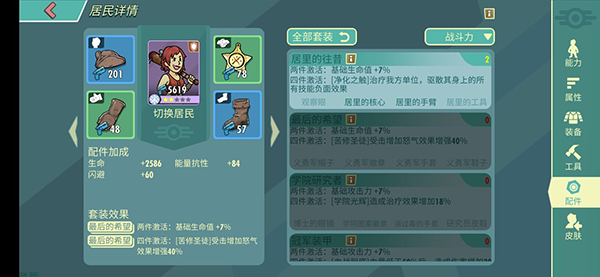 当然仅仅是宅在避难所里头也不是长久之计,玩家可以通过派遣幸存者到外面的世界,收集一些物资回来,并且也可以获得一些经验值进行升级。不过一定要记得让他们返回避难所里,不然他们很有可能会死在荒郊野外。在游戏当中还包含了服装和武器系统,其中服装可以让角色的属性点获得一定的提升。