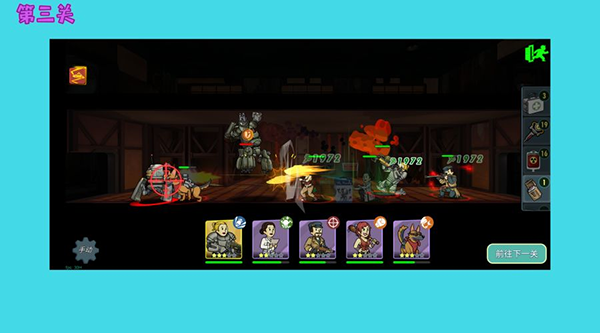 第五关的时候,直接先右边打坦克,打完进传送门,有好东西,然后在左边下去找boss,不过如果阵容不太行,一般来说打完这个坦克拿完东西就可以退了