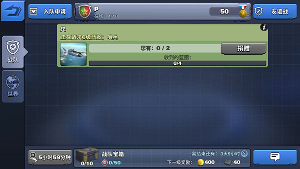 2)进入战队聊天室,按如图所示点击请求蓝图