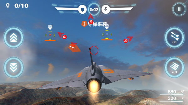 难点1:AI飞机的密集攻击。清扫关卡可不是打打靶子那么轻松的事情,在你击毁气球时,会有AI飞机对你发起攻击,除了要快速击毁气球,还需要躲避AI的攻击。而且AI的攻击非常频繁,许多新手就是因为前期躲避导弹应接不暇,能量消耗完后无法使用特技飞行躲避导弹,最后只能乖乖挨打。
