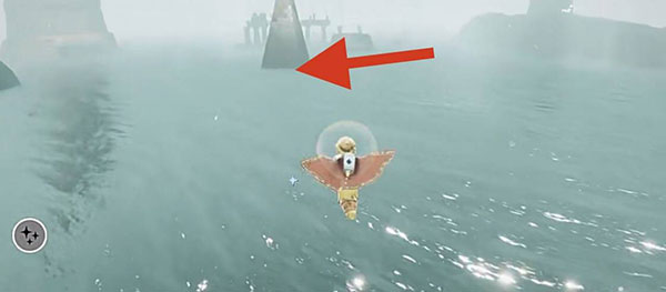 1、到达潜海季的入口之后,起飞飞向入口的左前方的位置,可以看到一艘小船,小船上会有潜海季的向导先祖。
