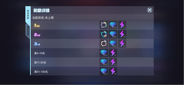 在【大师赛】中,达人们可以通过界面下方的“奖励预览”中看到排名奖励与累积奖励,界面上方的分数进度条代表达人们在本赛季获得的每首歌曲最高分的总和,这个分数也是大师赛排行榜的排名依据呢~达人们,努力上榜吧!