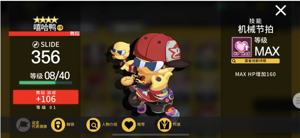 另外,之前说到的可练可不练,练了最好的1★梦琪。其作用是当你SLIDE位置没有加固定分偶像的时候,可以SLIDE位置上梦琪,TAP位置换成加分的卡。同理,FLICK位置也可以用其他分卡来替换,这个时候你如果有梦琪,挂机组合的搭配就会更加的灵活和多元。可能有人要问,这样那我就没有蜂蜂加血了。这好办,你SLIDE练个嘻哈鸭,或者TAP练一个多明戈(那只白熊)就可以了,加的HP也不老少,足够你全MISS撑过绝大部分的简单~困难,及部分专家歌曲。