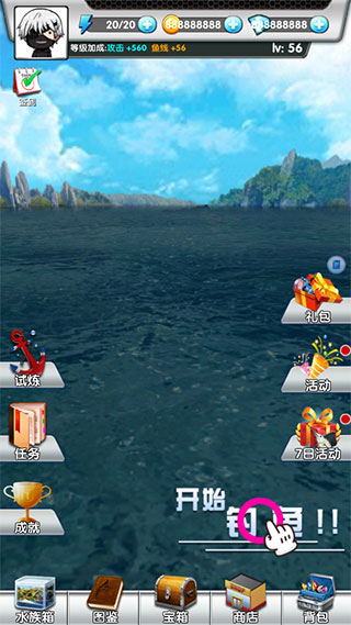 2、在页面中能看到水族箱、图鉴、宝箱、商店、背包五个不同的模块,