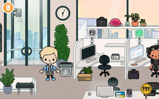 我们随便点击一个大楼即可进入其中,例如我们选择商业用楼,进来后发现里面是一间办公室,可以看到很多办公用品,还有很多工作的人员。