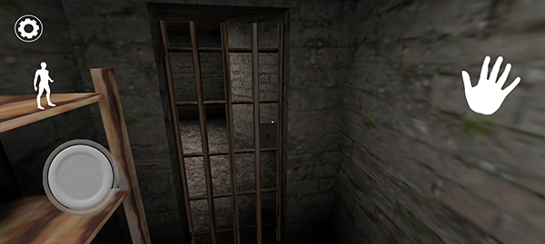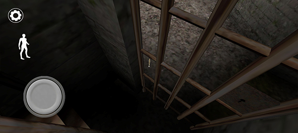 3、滑动角色移动到这个铁门前,在门外有一把开锁器我们要拾取它;