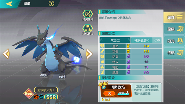 3、经典宝可梦收集与培养:涵盖初代到最新世代的宝可梦,支持捕捉、进化、mega进化(如喷火龙X/Y形态),保留属性克制、技能搭配等核心策略。